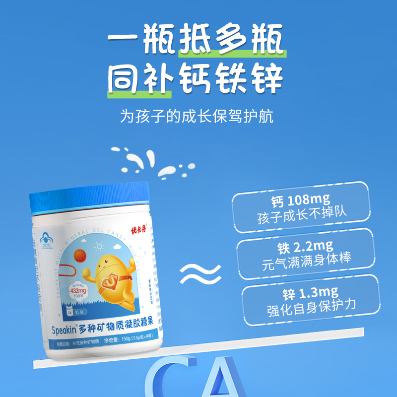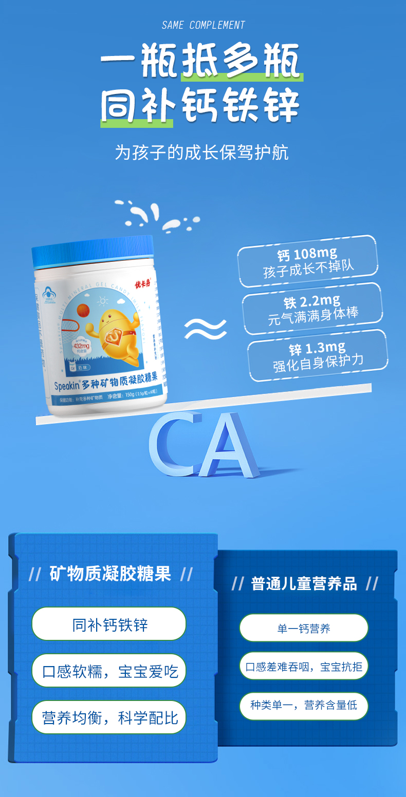 一瓶同補(bǔ)鈣鐵鋅,藍(lán)帽認(rèn)證為孩子的成長(zhǎng)保駕護(hù)航