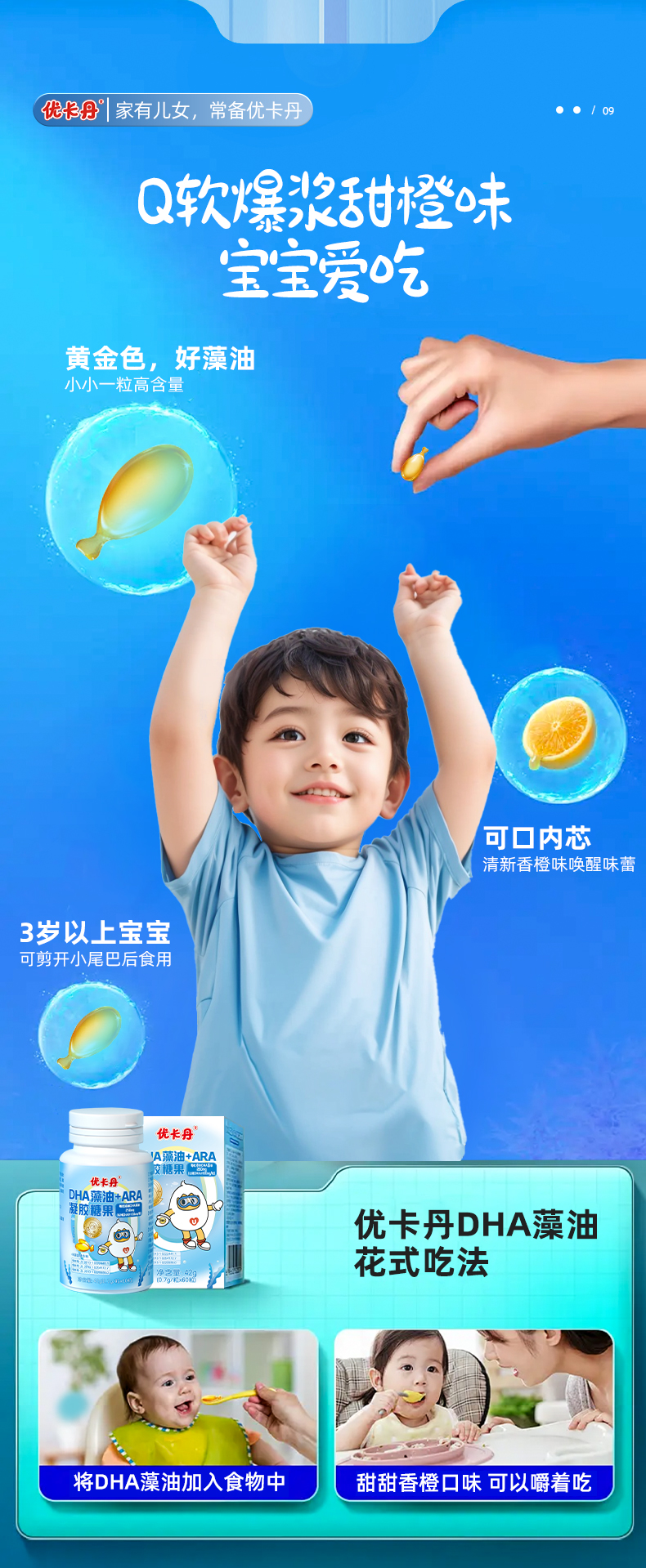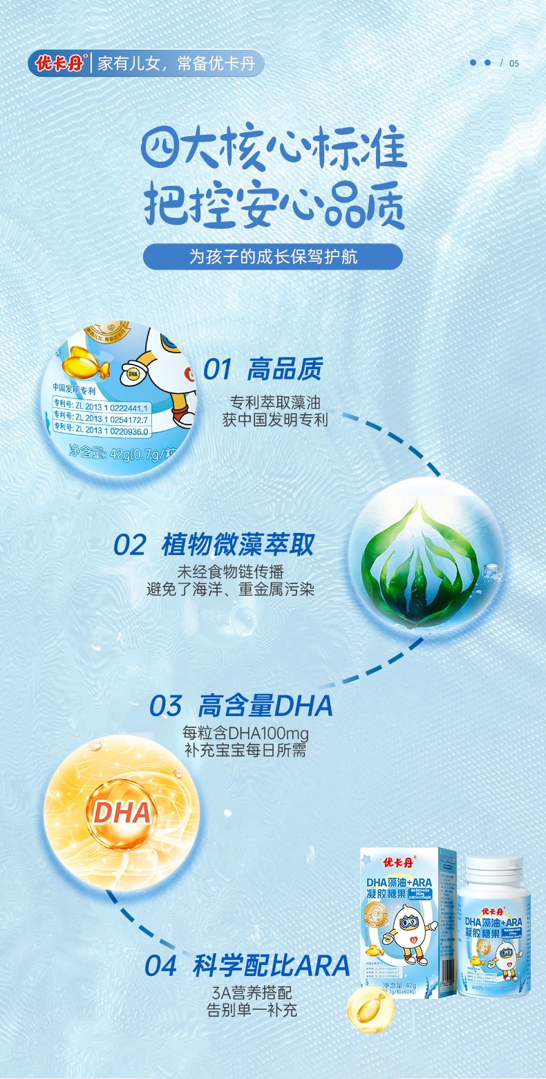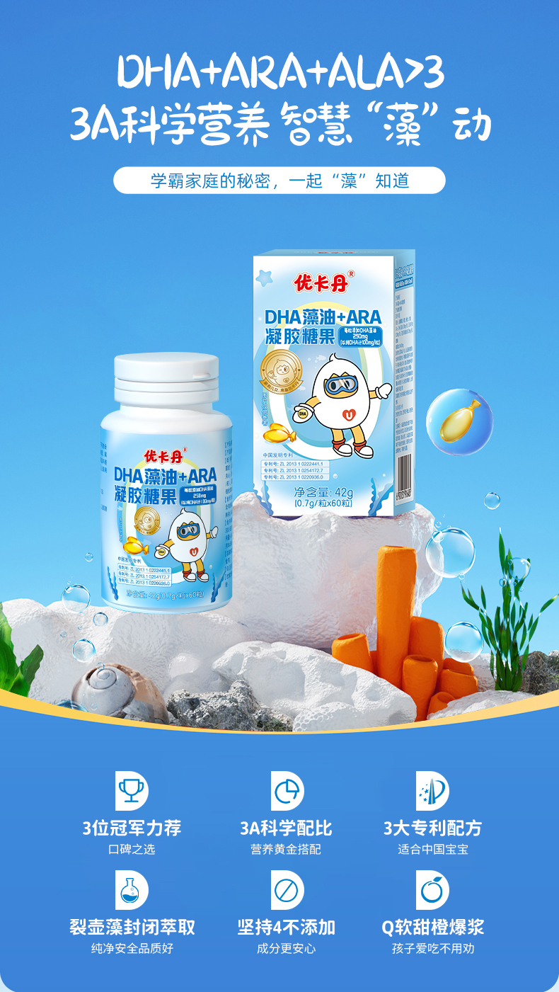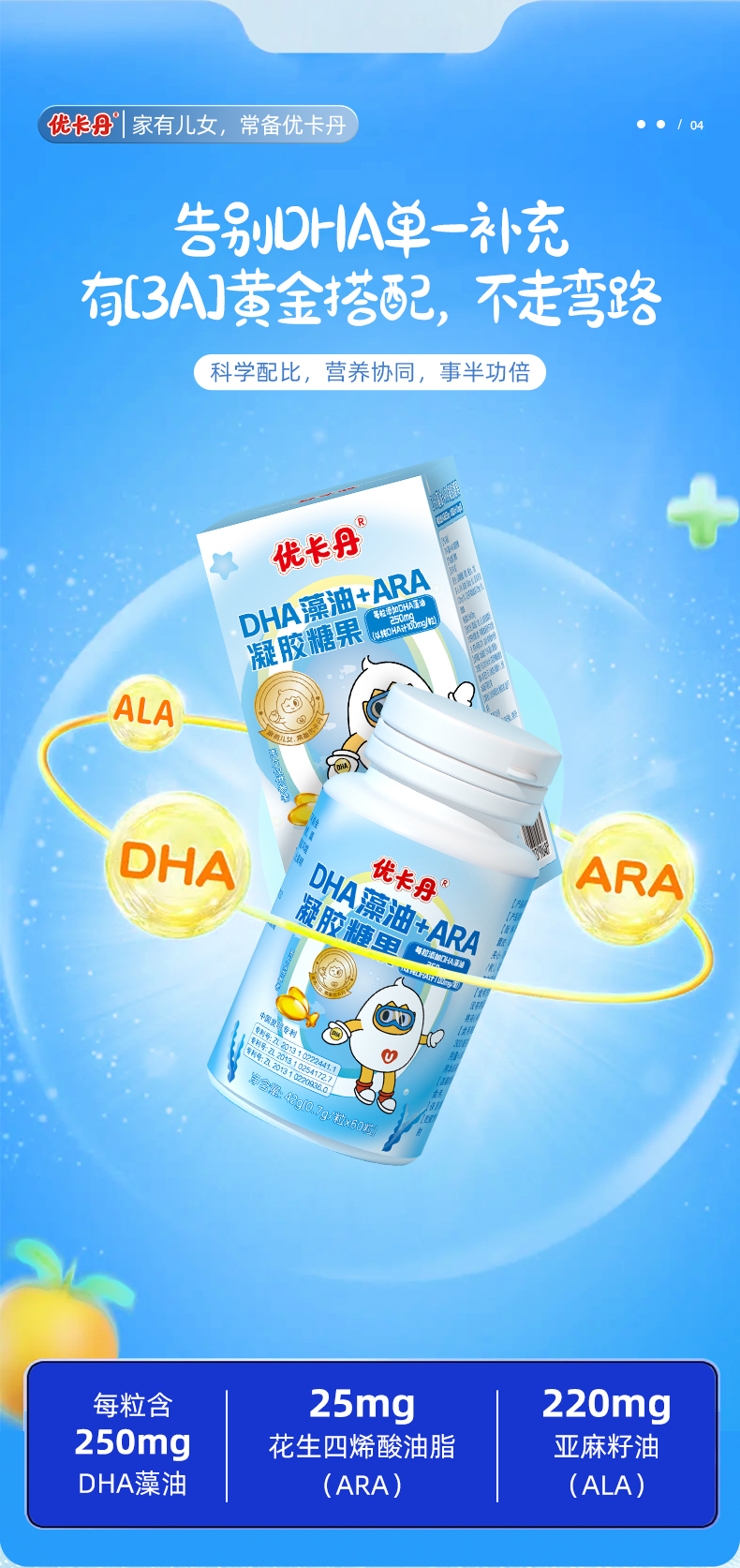 【產(chǎn)品名稱】優(yōu)卡丹DHA藻油+ARA凝膠糖果