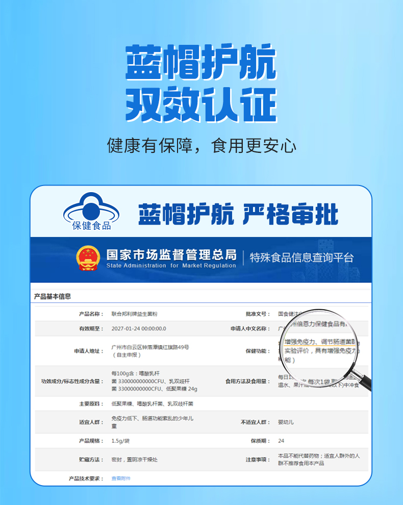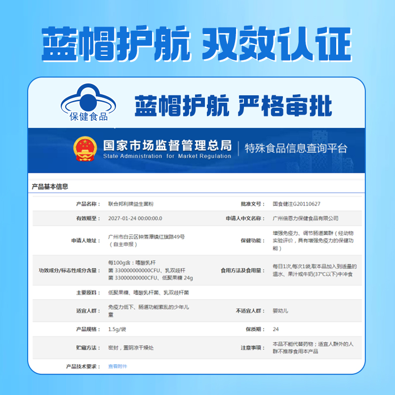保健功能:有助于增強免疫力、有助于調節腸道菌群(經動物實驗評價,具有有助于增強免疫力的保健功能)
