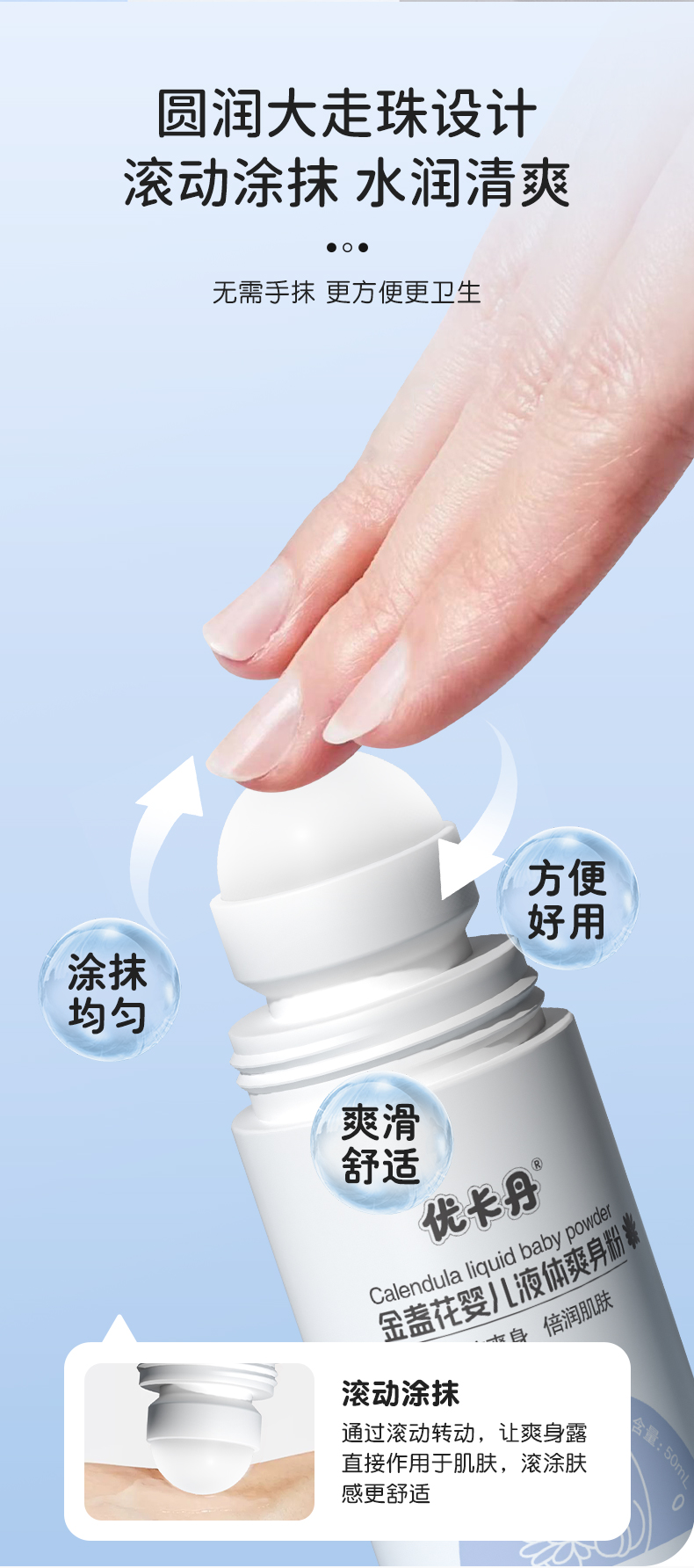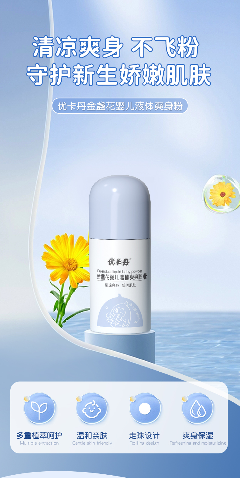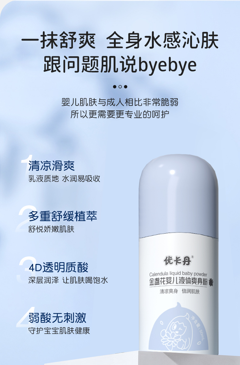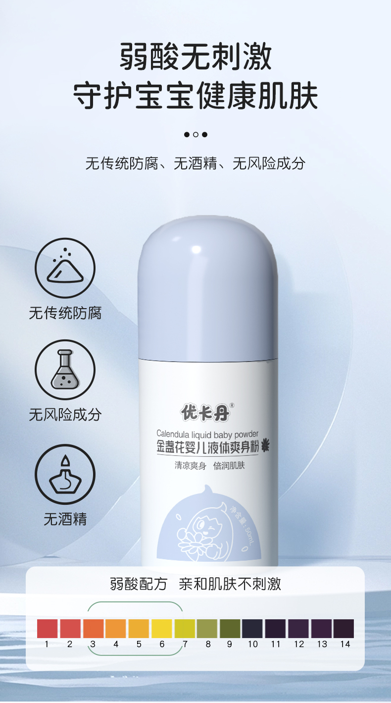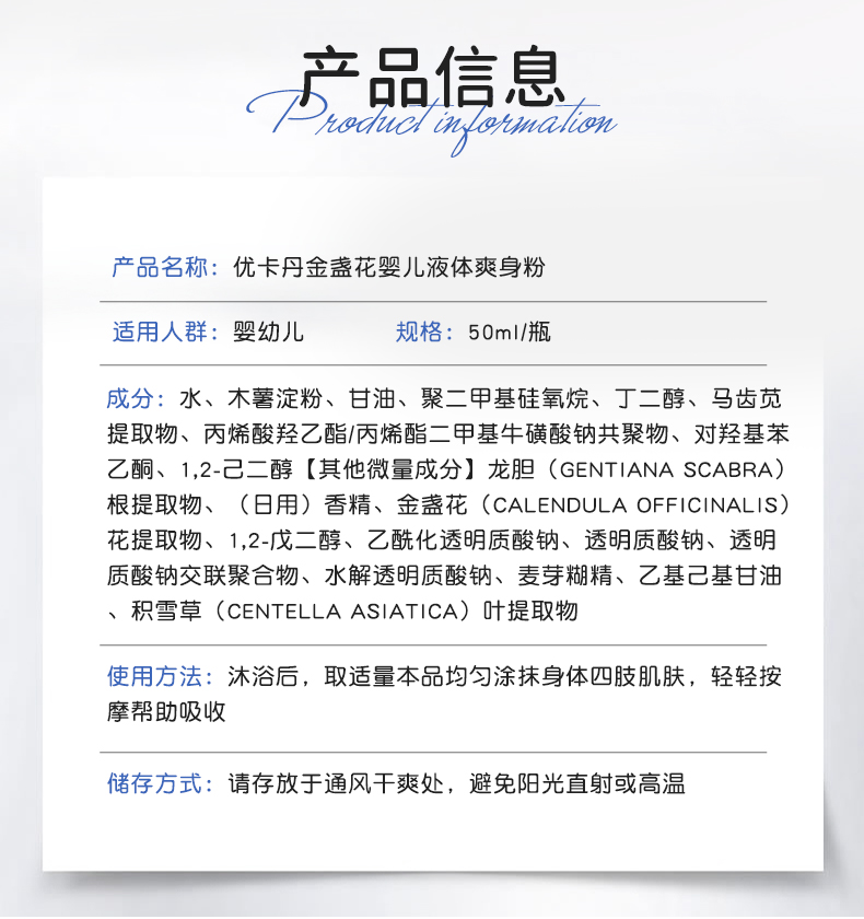 產品名稱:優卡丹金盞花嬰兒液體爽身粉
