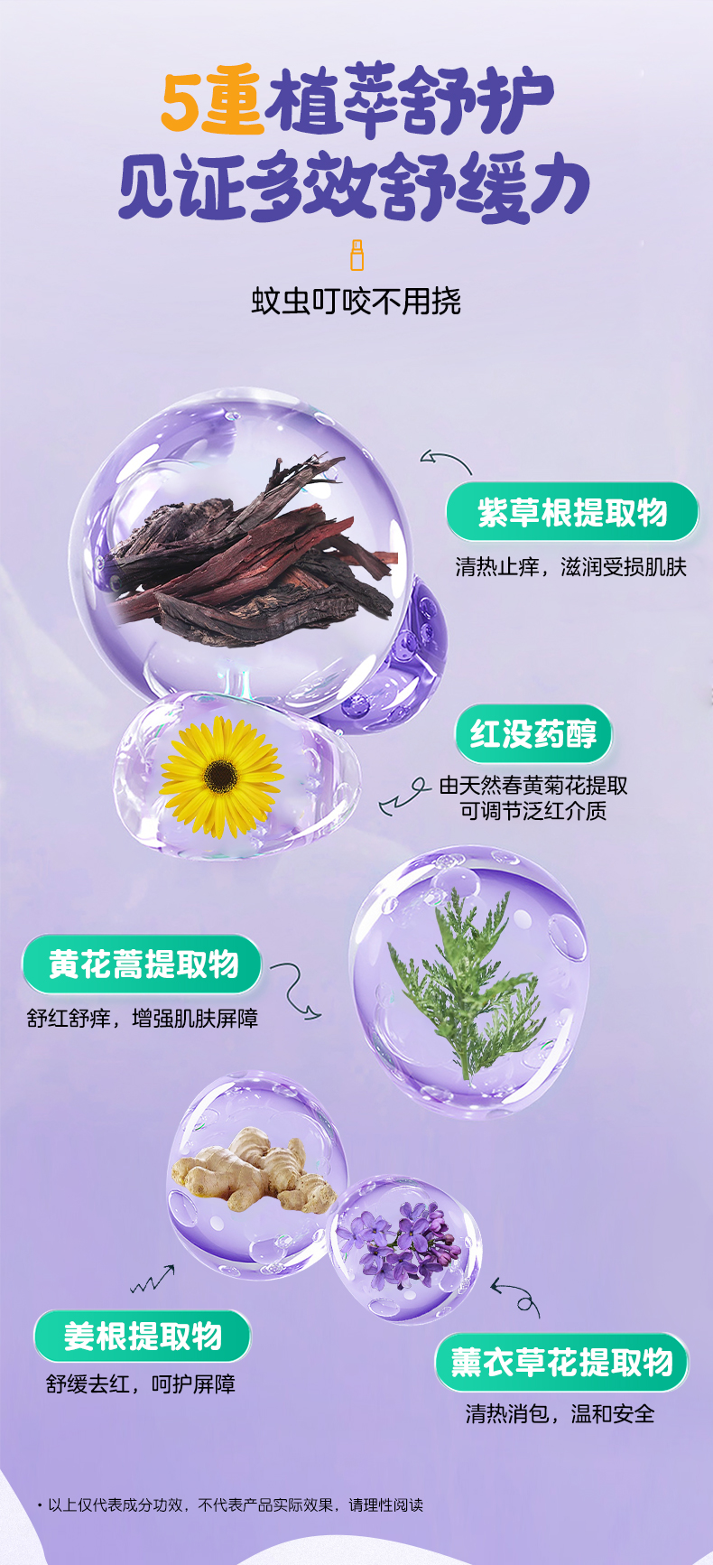 其他微量成分:紅沒藥醇、黃花蒿(ARTEMISIA ANNUA)提取物、薰衣草(LAVANDULA ANGUSTIFOLIA)花提取物、互生葉白千層(MELALEUCA ALTERNIFOLIA)葉油、4-叔丁基環己醇、女貞(LIGUSTRUM LUCIDUM)果提取物、丁二醇、羥苯基丙酰胺苯甲酸、姜(ZINGIBER OFFICINALE)根提取物、抗壞血酸棕櫚酸酯