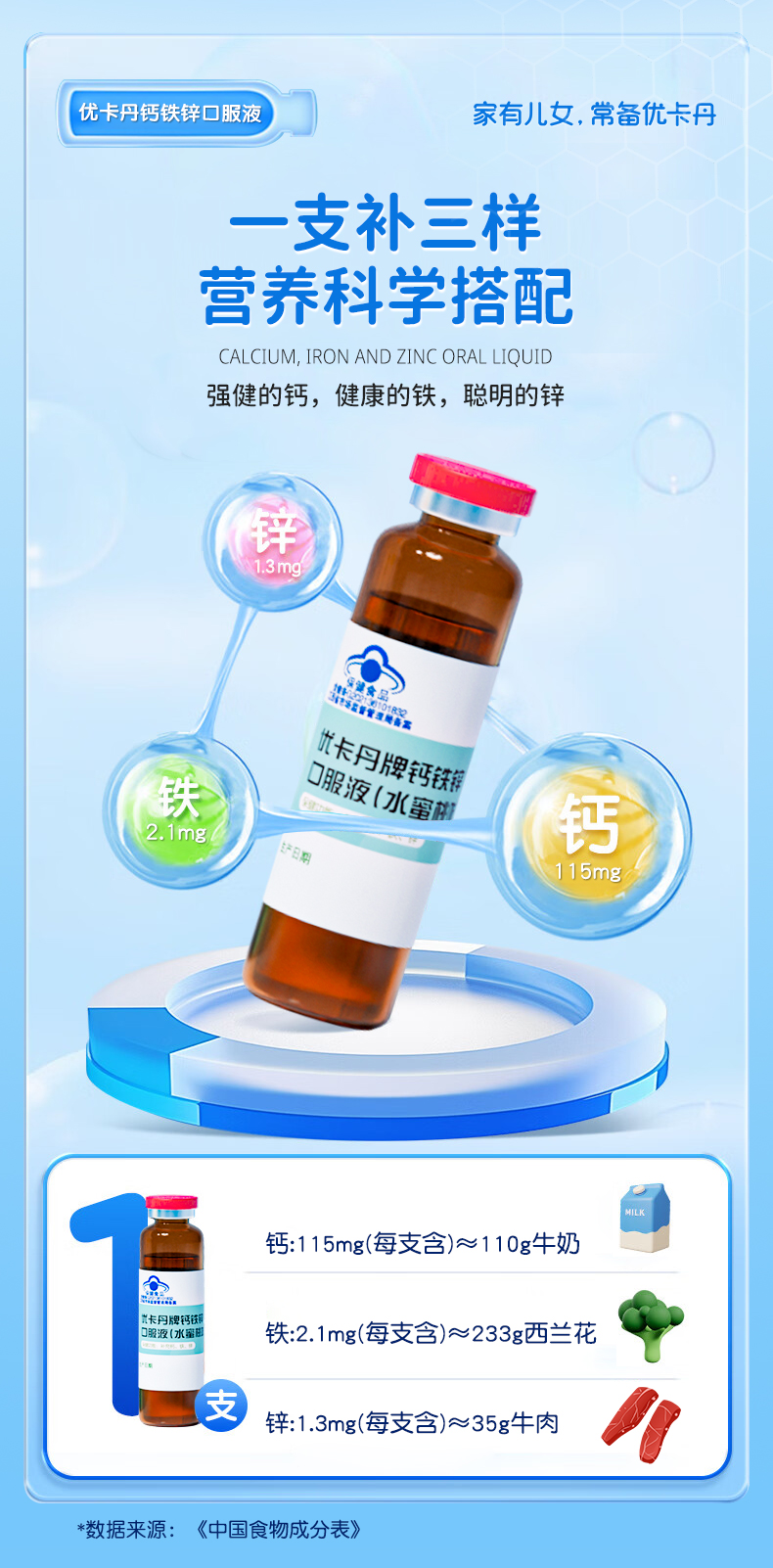 產品名稱:優卡丹牌鈣鐵鋅口服液(水蜜桃味)