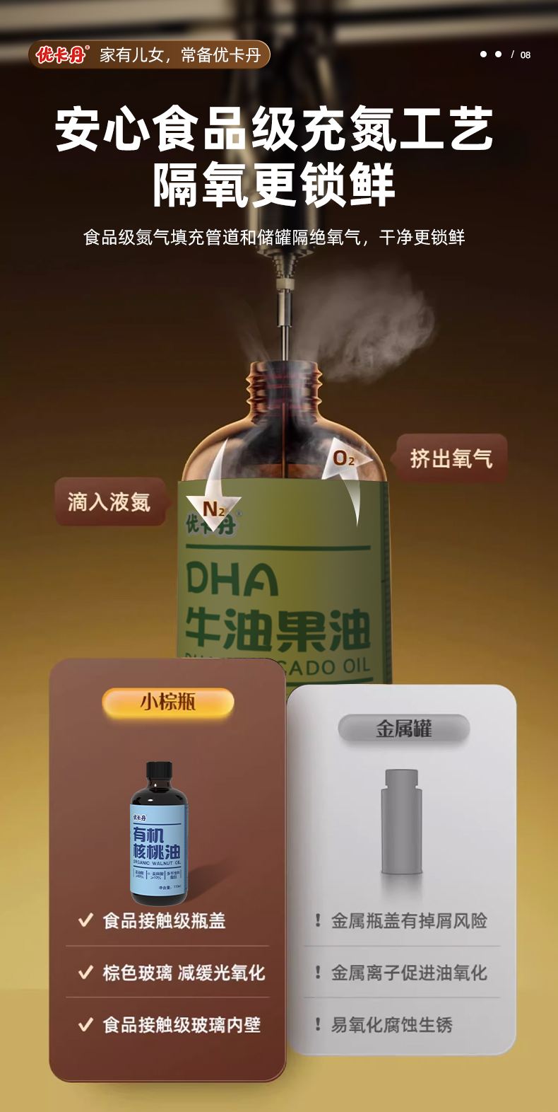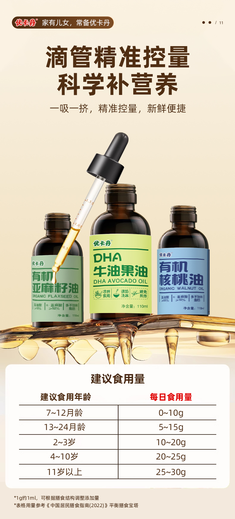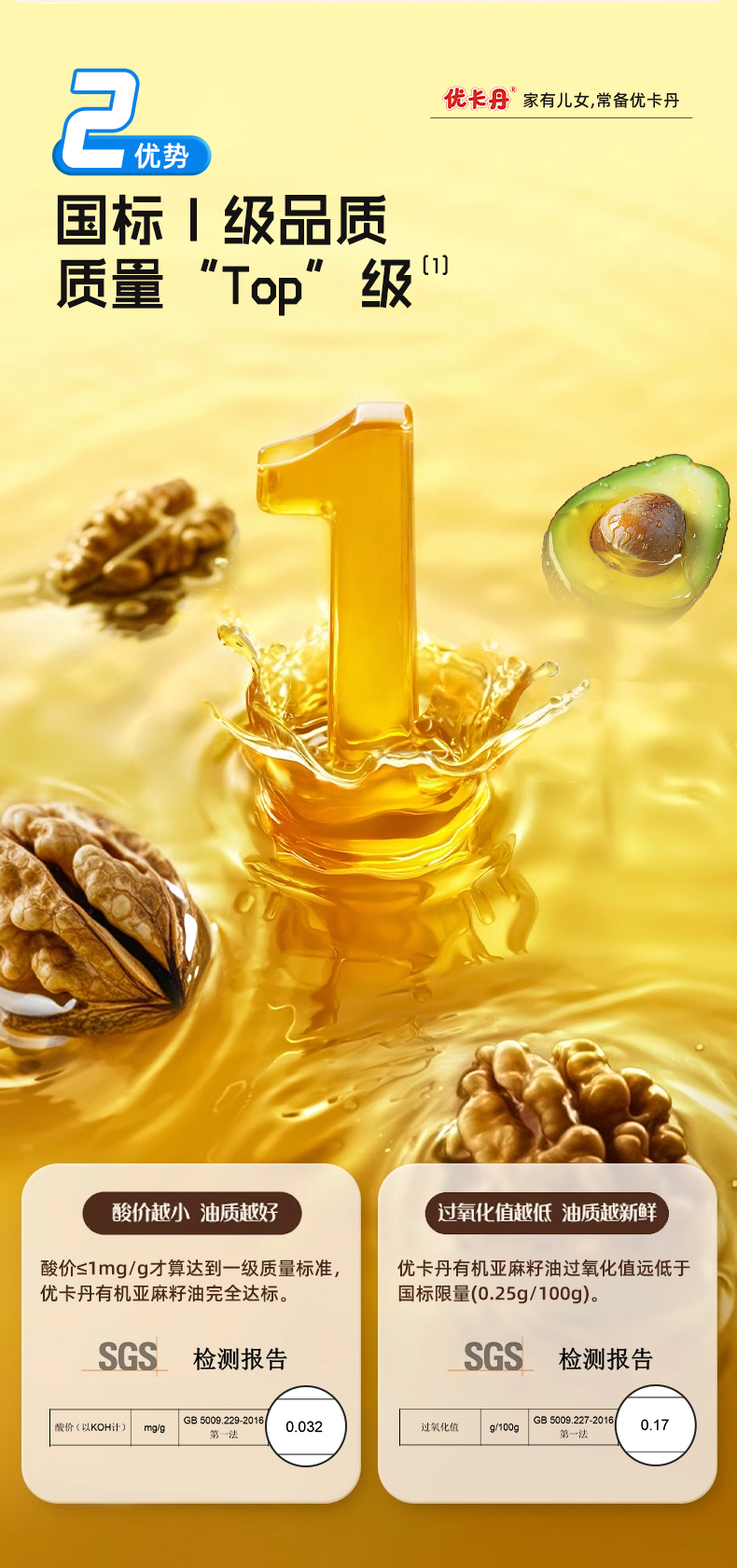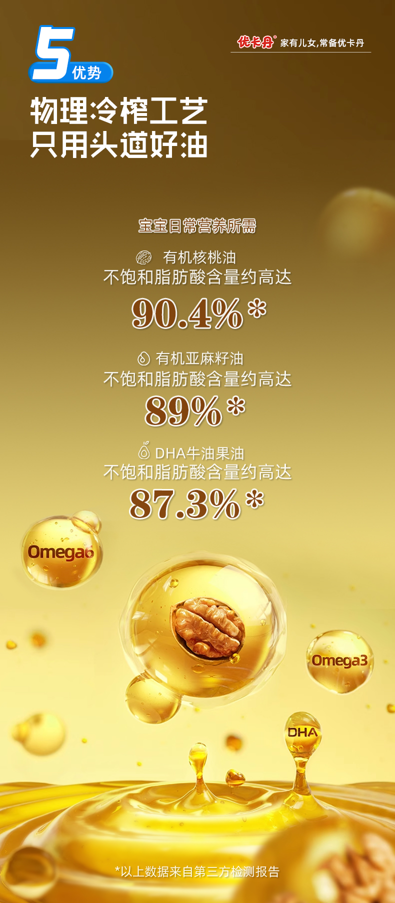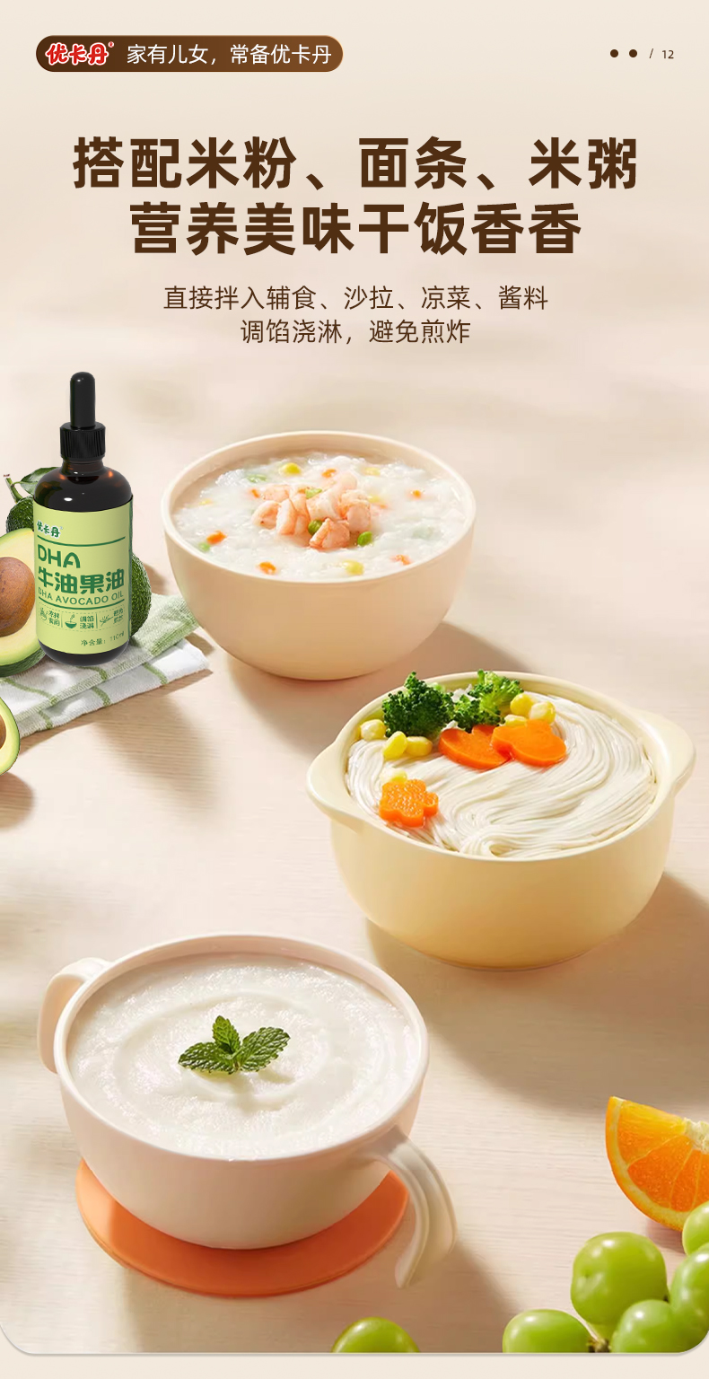 【產(chǎn)品名稱】優(yōu)卡丹有機(jī)核桃油+有機(jī)亞麻籽油+DHA 牛油果油