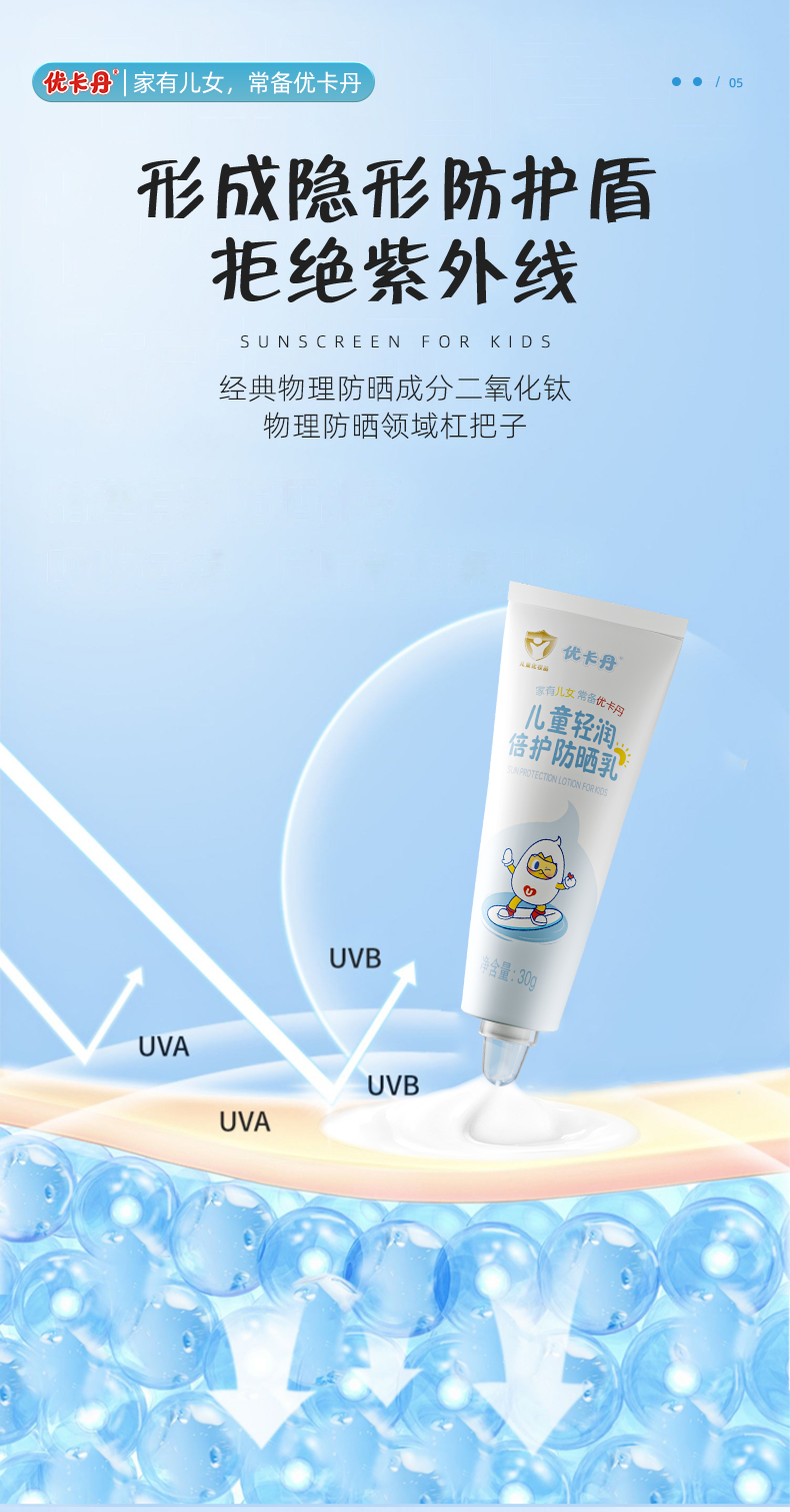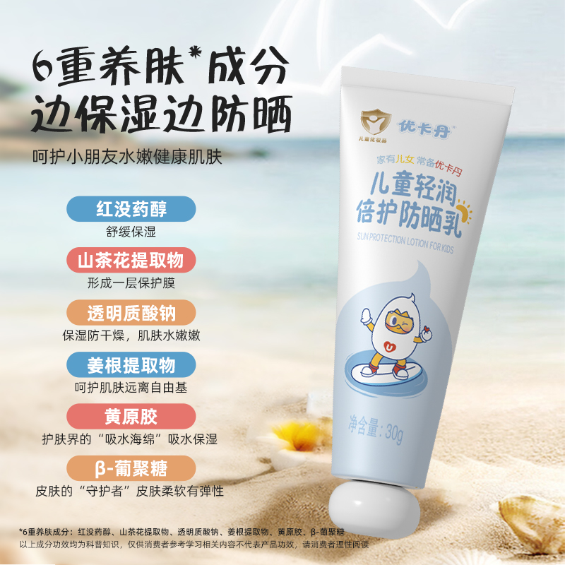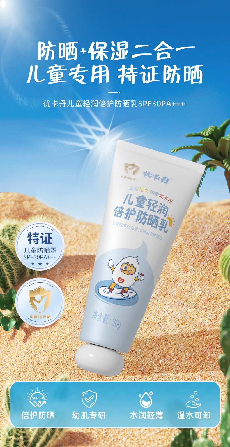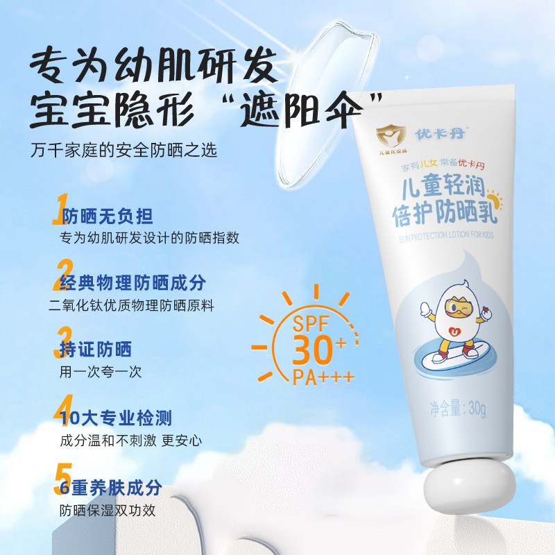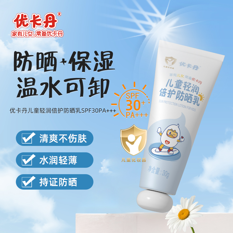 【產(chǎn)品名稱】優(yōu)卡丹兒童輕潤倍護(hù)防曬乳 SPF30PA+ + +