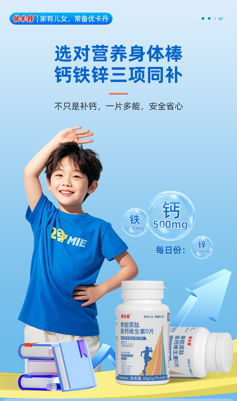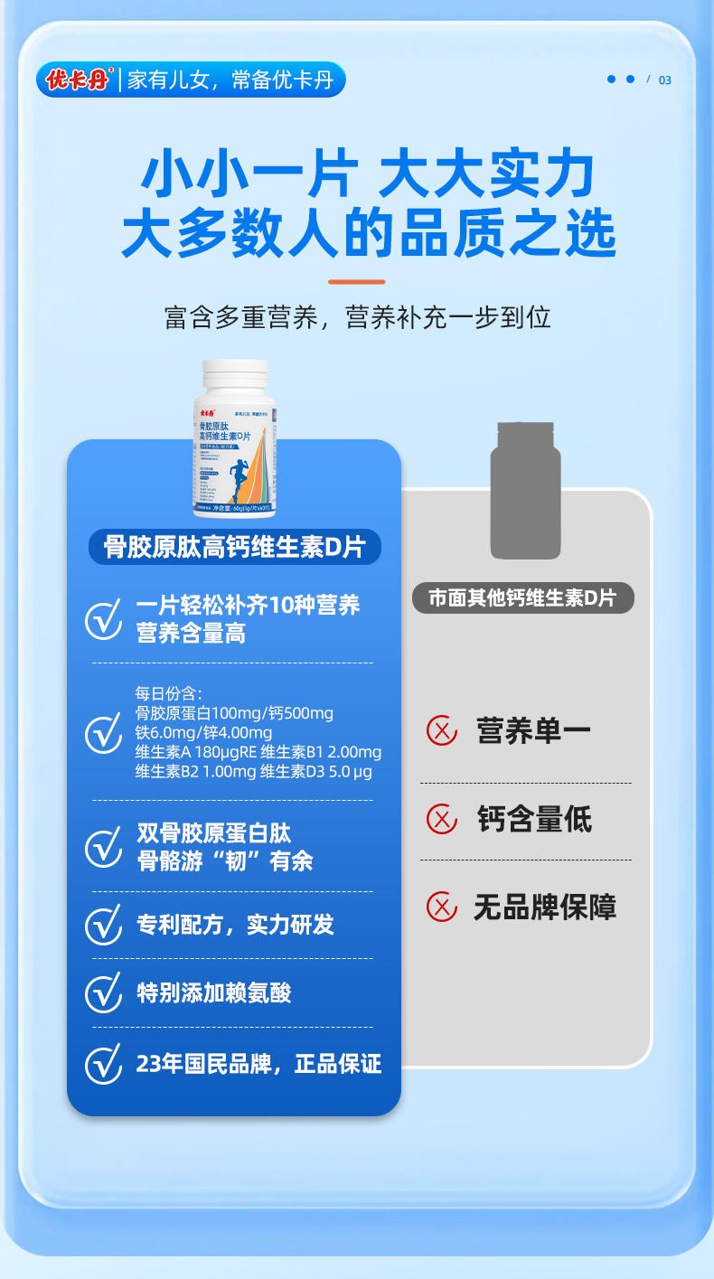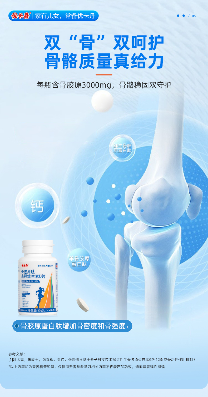 【產(chǎn)品名稱】?jī)?yōu)卡丹骨膠原肽高鈣維生素D片