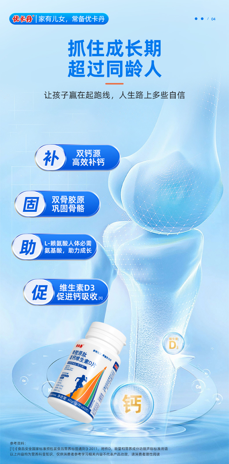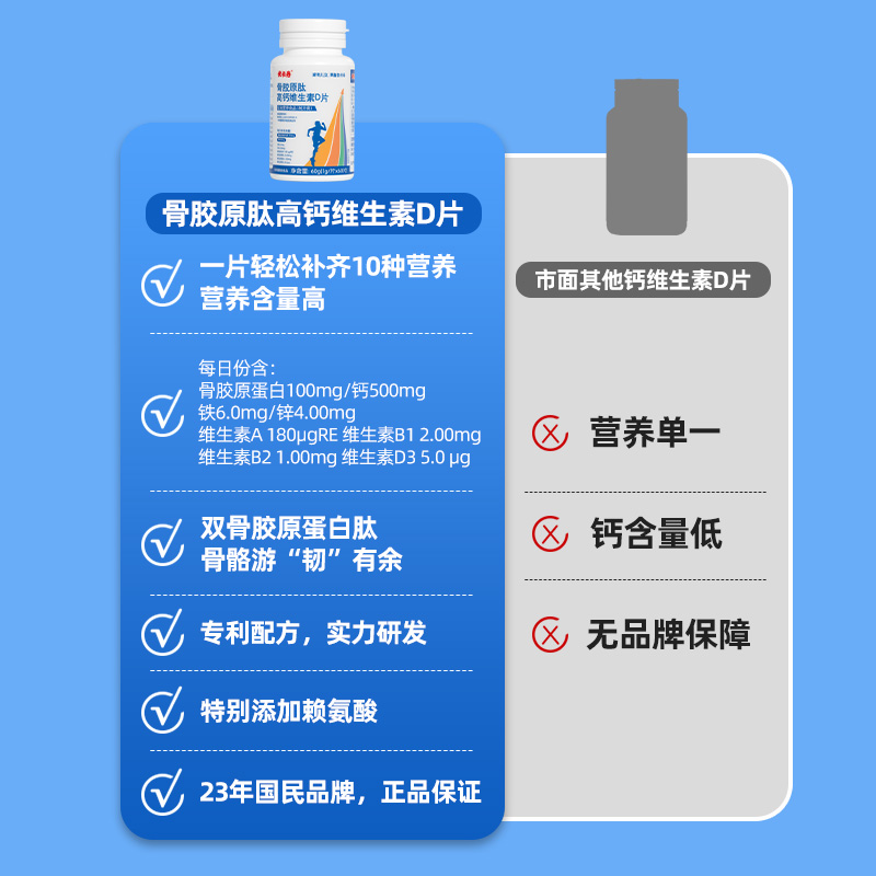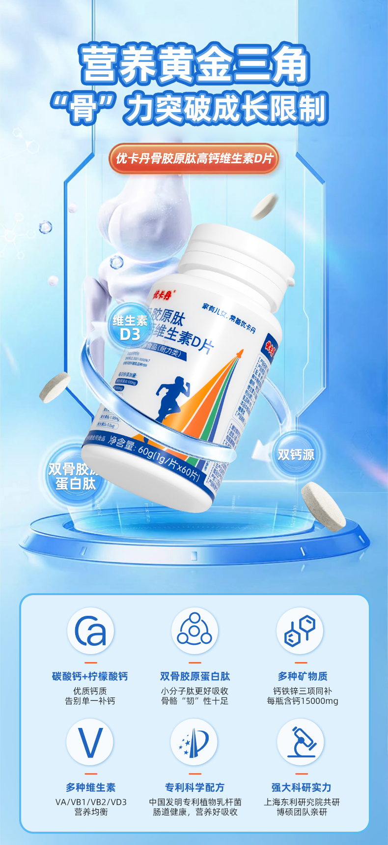 【產(chǎn)品名稱】?jī)?yōu)卡丹骨膠原肽高鈣維生素D片