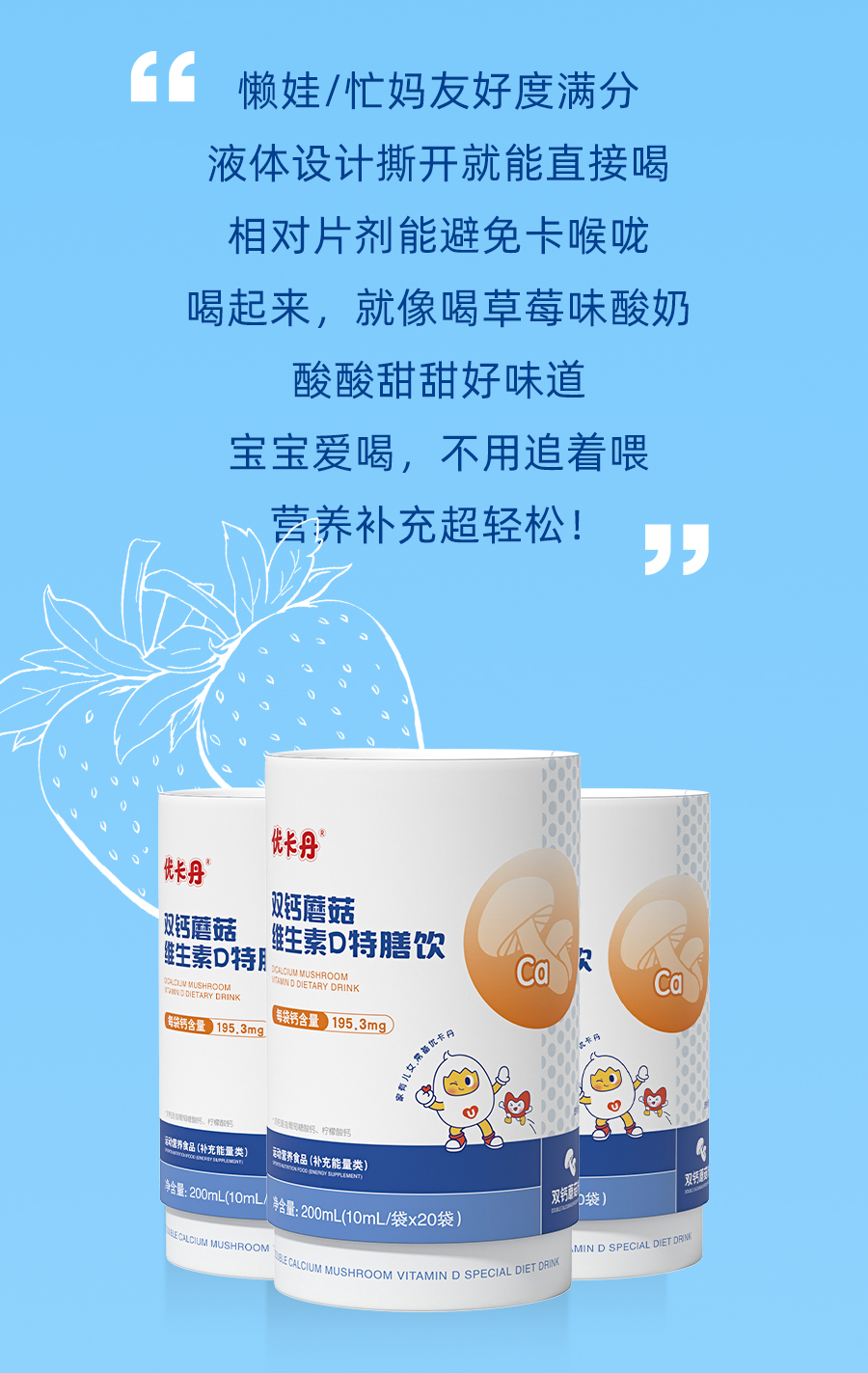 【配料表】水、山梨糖醇、葡萄糖酸鈣、檸檬酸鈣、果膠、蘑菇粉、DL-蘋果酸、膽鈣化醇(維生素D3)、酸奶、草莓汁