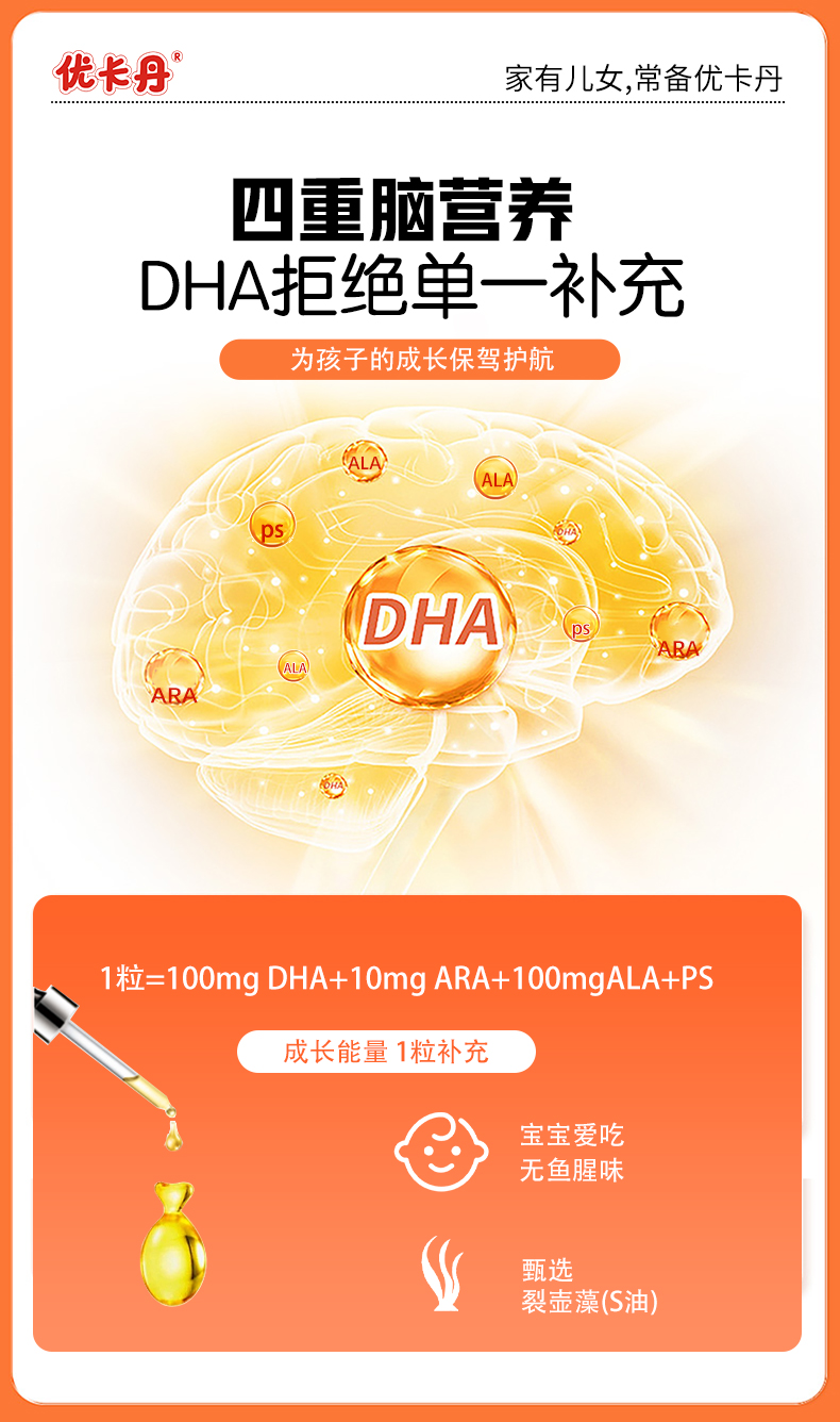 期末沖刺的關鍵時期,別讓孩子因為營養跟不上而掉隊!選擇優卡丹 DHA 藻油 + ARA 凝膠糖果,每天 1 粒,高含量 DHA + 美味口感 + 安全保障 + 品牌保障,全方位助力孩子輕松應對考試,發揮出最佳水平!