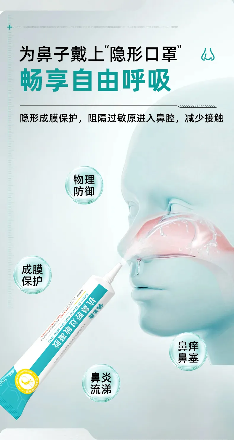 其實(shí),應(yīng)對(duì)鼻炎有一種更溫和、更安全的方法:抗鼻腔過(guò)敏凝膠,從物理上隔絕過(guò)敏原,就像給鼻腔帶上一層“隱形口罩”。