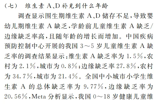 據(jù)2024年《中國兒童維生素A、維生素D臨床應(yīng)用專家共識》[1] 指出:我國中小學(xué)生維生素AD缺乏率明顯高于學(xué)齡前兒童,相比0-3歲嬰幼兒,中小學(xué)生更需要補(bǔ)充維生素A和D,應(yīng)持續(xù)至整個(gè)青春期。