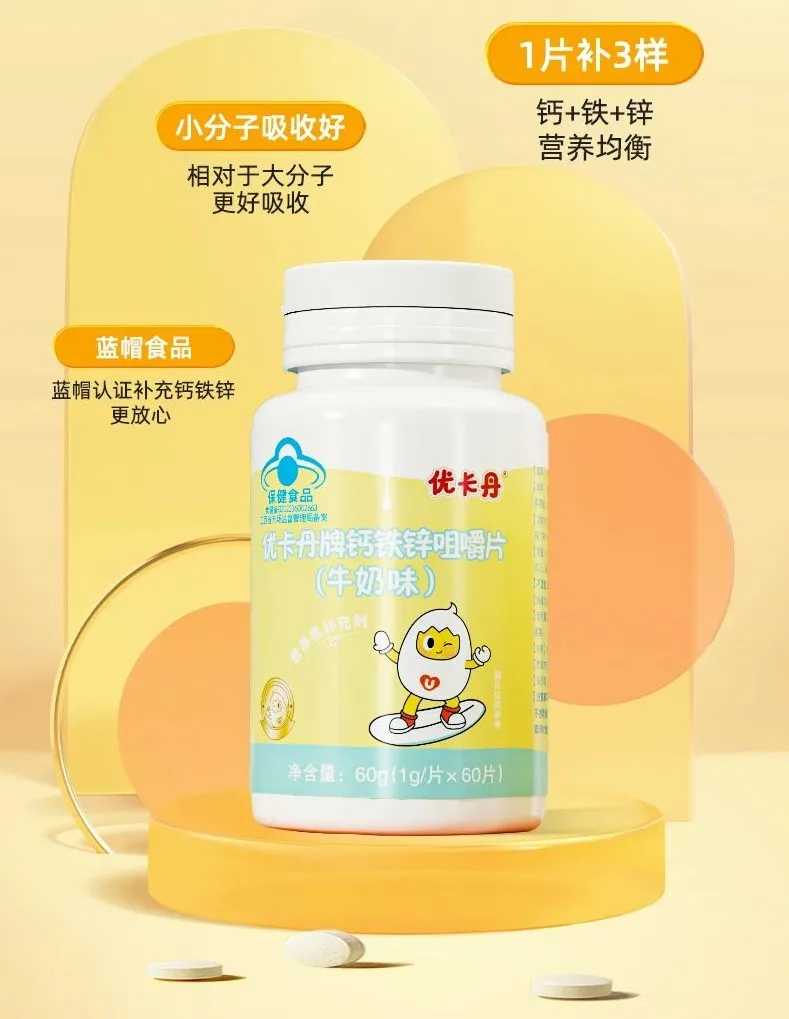 優卡丹牌鈣鐵鋅咀嚼片|營養嚼著吃,成長更輕松