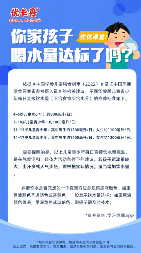 優優課堂|兒童飲水量標準出爐,快來看看你家孩子有沒有達標