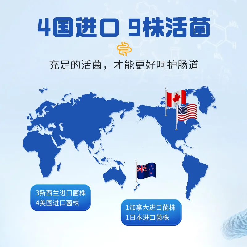優(yōu)卡丹益生菌凍干粉沒有采用常見的單一菌種,而是組建了一支“14種活性菌株”的聯(lián)合戰(zhàn)隊。這支隊伍里包含了9株進(jìn)口優(yōu)質(zhì)菌株(分別來自新西蘭、美國、加拿大、日本),且株株有編碼、來源可溯源。