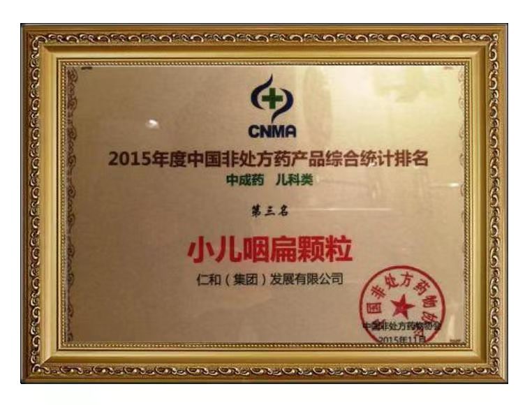 2015年度中國非處方藥產(chǎn)品綜合統(tǒng)計(jì)排名第三名